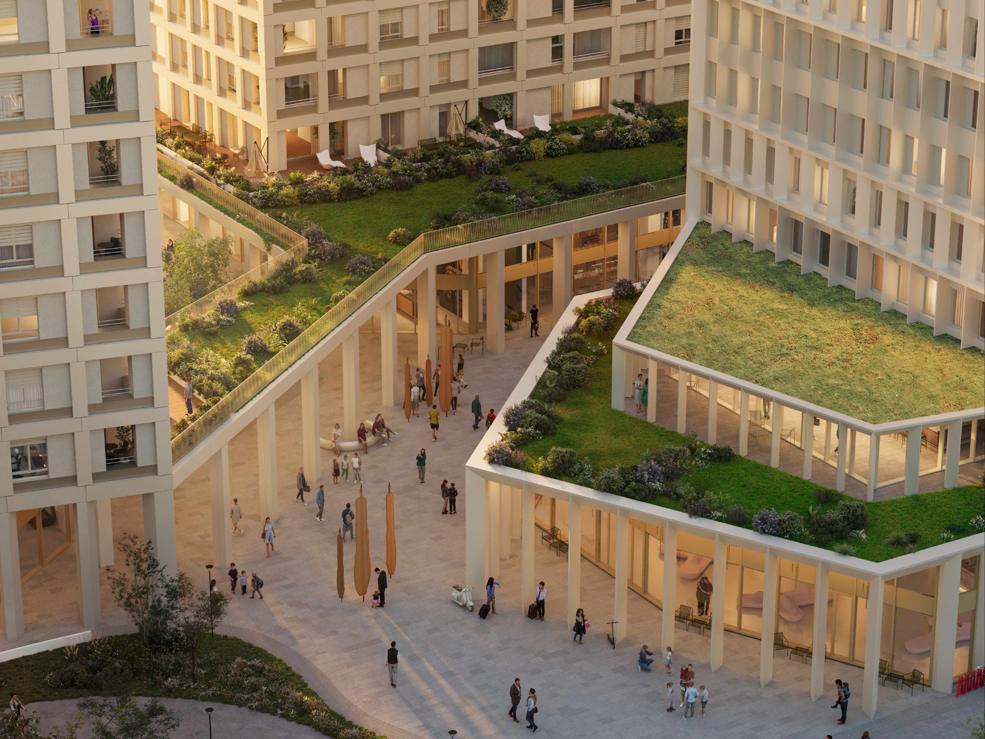Este conceput ca un cartier urban complet, unde locuirea, serviciile, retailul și spațiile de socializare se întâlnesc într-un singur loc.